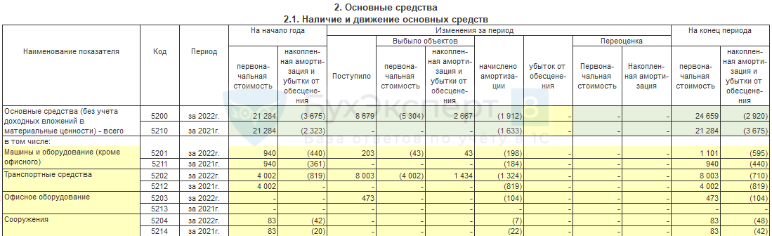 Раскрытие информации об ОС можно представить в виде Пояснения 2. Основные средства, утв. в Приложение 3 Приказа Минфина от 02.07.2010 N 66н: