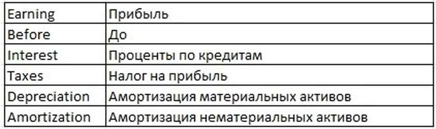 EBITDA – это сокращение от Earnings Before Interest, Taxes, Depreciation and Amortization. Дословный перевод звучит как прибыль до вычета процентов, налогов, износа и амортизации. Речь идет про: