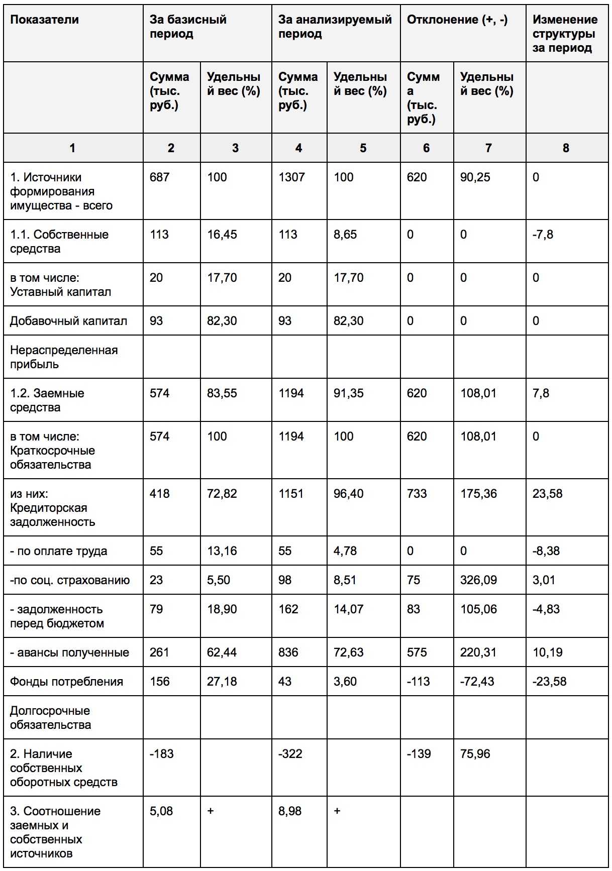 Теперь проанализируем динамику состава и структуры источников формирования имущества нашей компании: