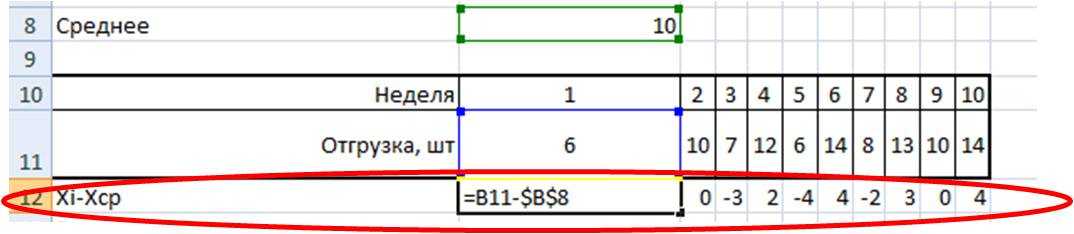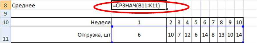1. Рассчитаем среднее значение для этого воспользуемся формулой Excel =СРЗНАЧ(B11:K11)