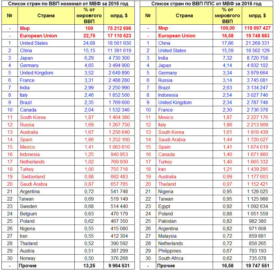 ВВП России и стран мира