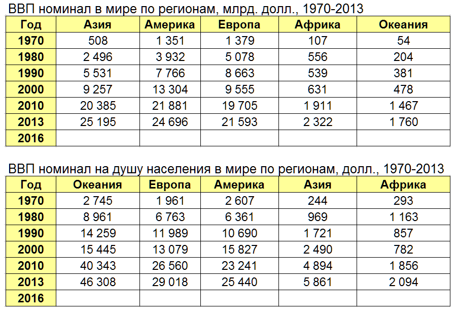 Количественные показатели экономического развития стран мира отражаются в долларах США. В 2017 г. суммарный ВВП по всем государствам согласно данным Всемирного банка составил 76 671 787 миллионов долларов в США.