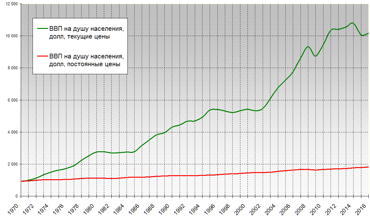 На последок рекомендую посмотреть на график изменения ВВП на душу населения в России с 1993 г: