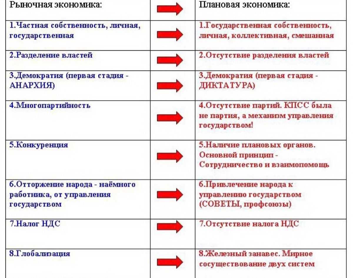 Базовые признаки и черты плановой экономики