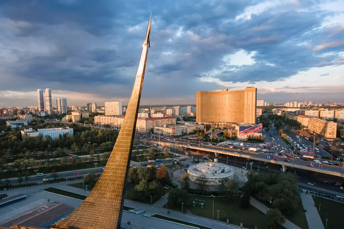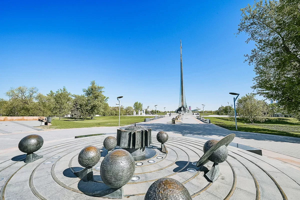 Следующую точку на космической карте Москвы смело можно назвать альфой и омегой истории российской космонавтики. На территории Останкинского района расположены Музей космонавтики, монумент «Покорителям космоса» и Аллея Космонавтов. Так что, отправившись на ВДНХ, вы можете убить даже не двух, а трех зайцев – и не простых, а космических! Первым из этого трио был открыт памятник «Покорителям космоса». По первоначальному замыслу местом для установки монумента должны были стать Воробьевы горы недалеко от главного здания МГУ. Но довольно скоро выяснилось, что будущий монумент не сможет органично вписаться в уже сложившийся природно-архитектурный, поэтому было решено перенести его на пустырь рядом с главным входом ВДНХ. Там обелиск и установили 4 ноября 1964 года.