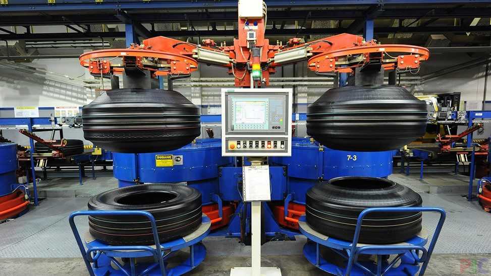 Предпоследний этап – сборка готовой покрышки. Осуществляется она на станке, на который поступают все готовые элементы. Обслуживают станок два работника: сборщик и перезарядчик.