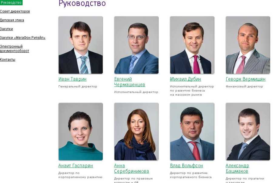 С полным списком правления Мегафон можно ознакомиться при помощи таблицы.