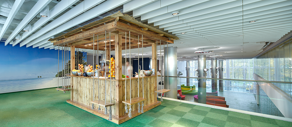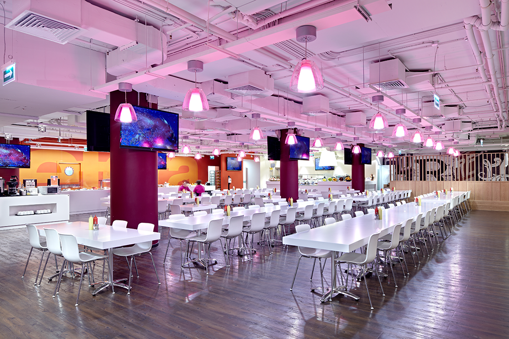 Каждый этаж оборудован двумя кофе-пойнтами – там можно найти фрукты, чай, кофе и печенье, молоко, мед, хлопья, мюсли, каши. Есть традиция вкусных полдников — в это время на кофе-пойнтах появляются конфеты, бутерброды и орехи. Периодически появляются сезонные вкусности: например, летом — мороженое, осенью — какао с зефирками, зимой – хурма.
