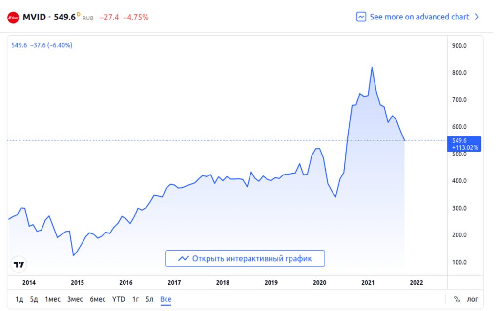 Публичное акционерное общество «М.Видео» вместе со своими «дочками» управляет сетью магазинов бытовой электроники в России. Торгуется на Московской бирже под тикером MCX: MVID