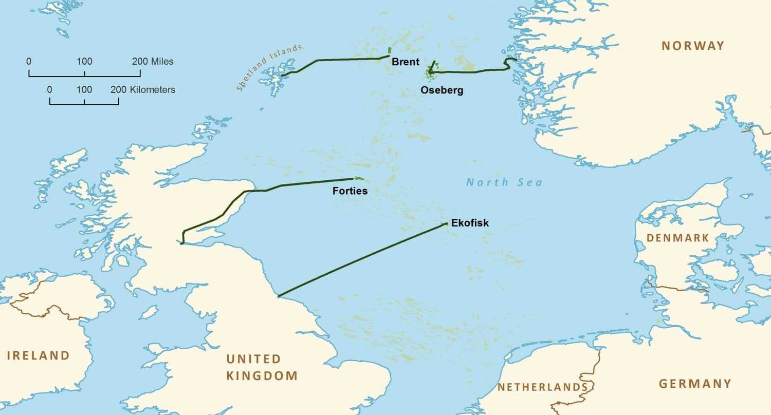 Расположение месторождений Brent, Forties, Oseberg и Ekofisk в Северном море / Изображение: EIA