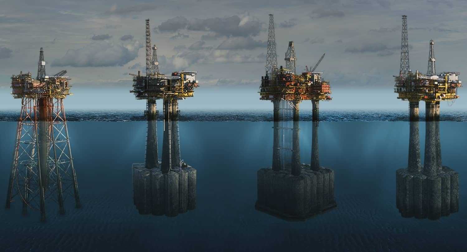 Платформы месторождения Brent, слева направо: Alpha, Bravo, Charlie, Delta / Изображение BBC