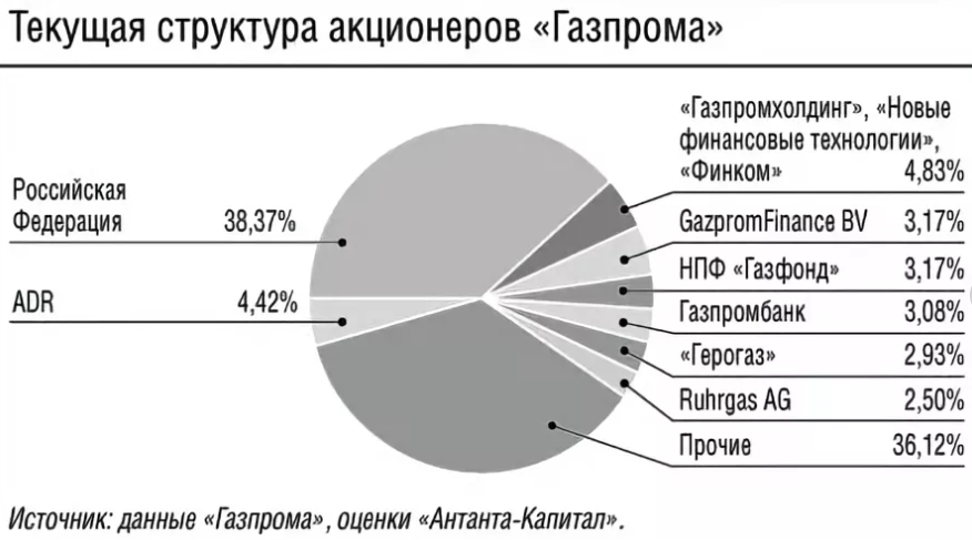 Крупнейшим акционером Газпрома является государство – России принадлежит в нем 50,23%. Держатели ADR (то есть, зарубежные инвесторы) составляют 16,16%, а 33,61% – прочие лица. Соответственно, в выплате дивидендов достаточно сильно заинтересовано и само государство.