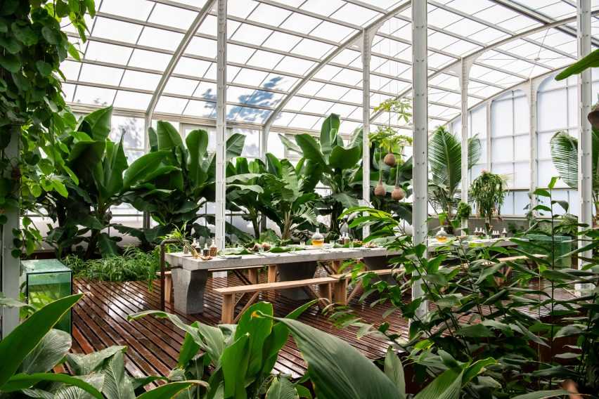 Необычный фермерский ресторан открылся в регионе Кейп-Вайнленд, ЮАР. Местная студия Malherbe Rust Architects создала на базе винодельческого хозяйства и отеля Babylonstoren заведение, ориентированное на получение посетителями уникального опыта. Обеденный зал располагается в специально созданной для него оранжерее с растениями и специями. Зона приема пищи представляет собой деревянную палубу, окруженную прудом с подогревом, повышающим температуру и уровень влажности. В этом пруду, а также в двух аквариумах обитают экзотические рыбы.