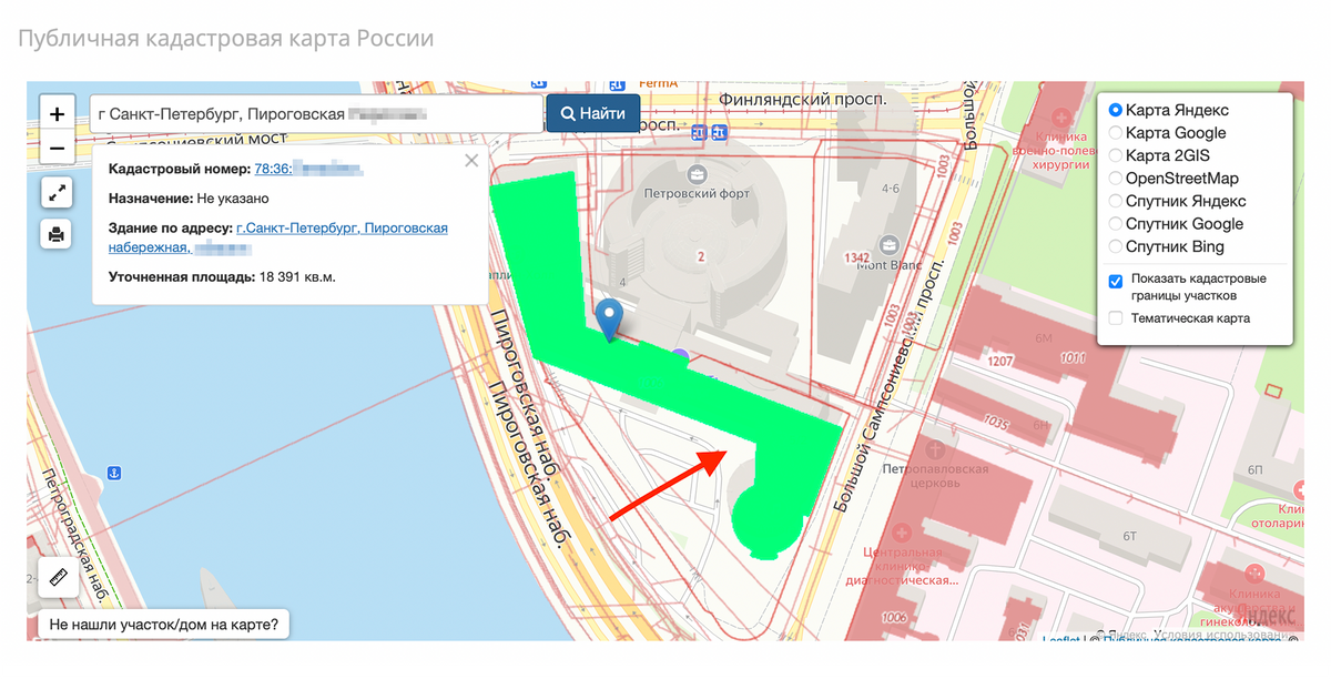 На публичной кадастровой карте нужно ввести адрес апарт-отеля в строку поиска