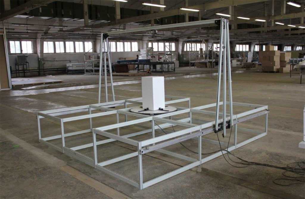 - Нарезка. Теперь необходимо придать товарный вид. Для этого Вам понадобится специальное оборудование. На такой установке (станке) пенопластовые блоки, при помощи струнной резки, разделяются на плиты. Стандартная толщина плит 2,3,4,5 и 10 см. На таком оборудовании, Вы сможете резать пенопластовые блоки и на заказ, той толщины, которая необходима заказчику.