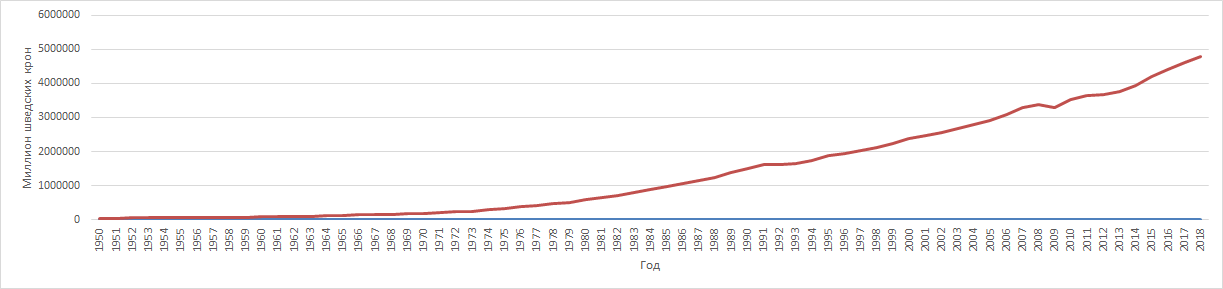 ВВП Швеции (1950 — 2018 гг., в млн. крон)