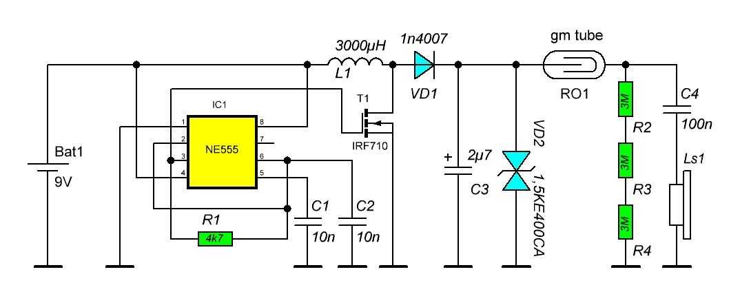 Измерение радиации счетчиком Гейгера, схема дозиметра