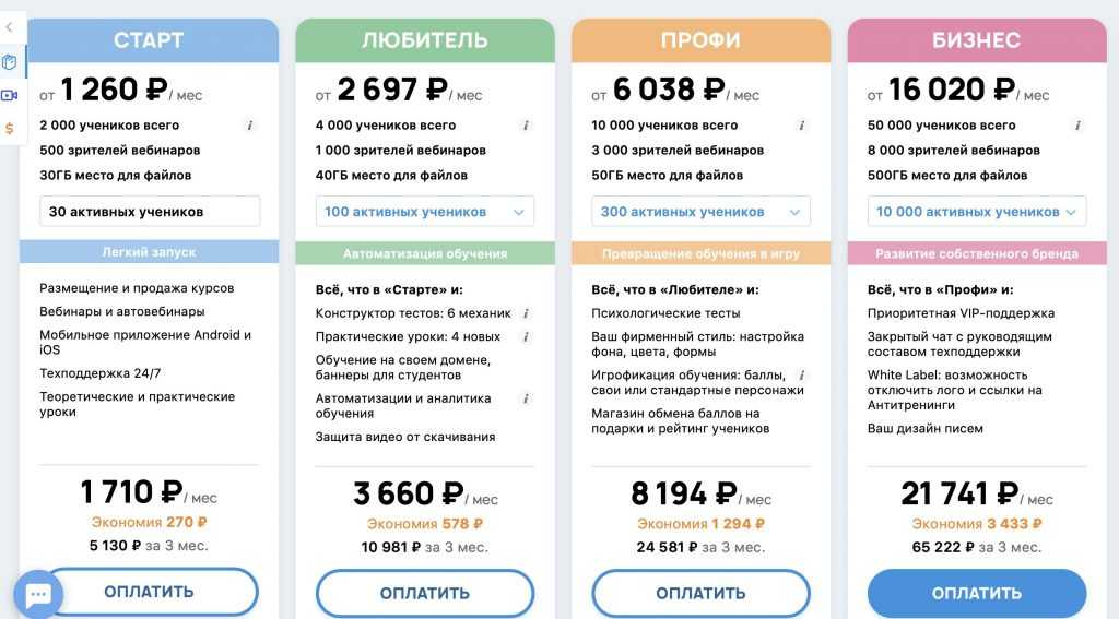 Обратите внимание, что все самые интересные функции (геймификация, магазин обмена баллов на награды и пр.) доступны только начиная с тарифа «Профи»