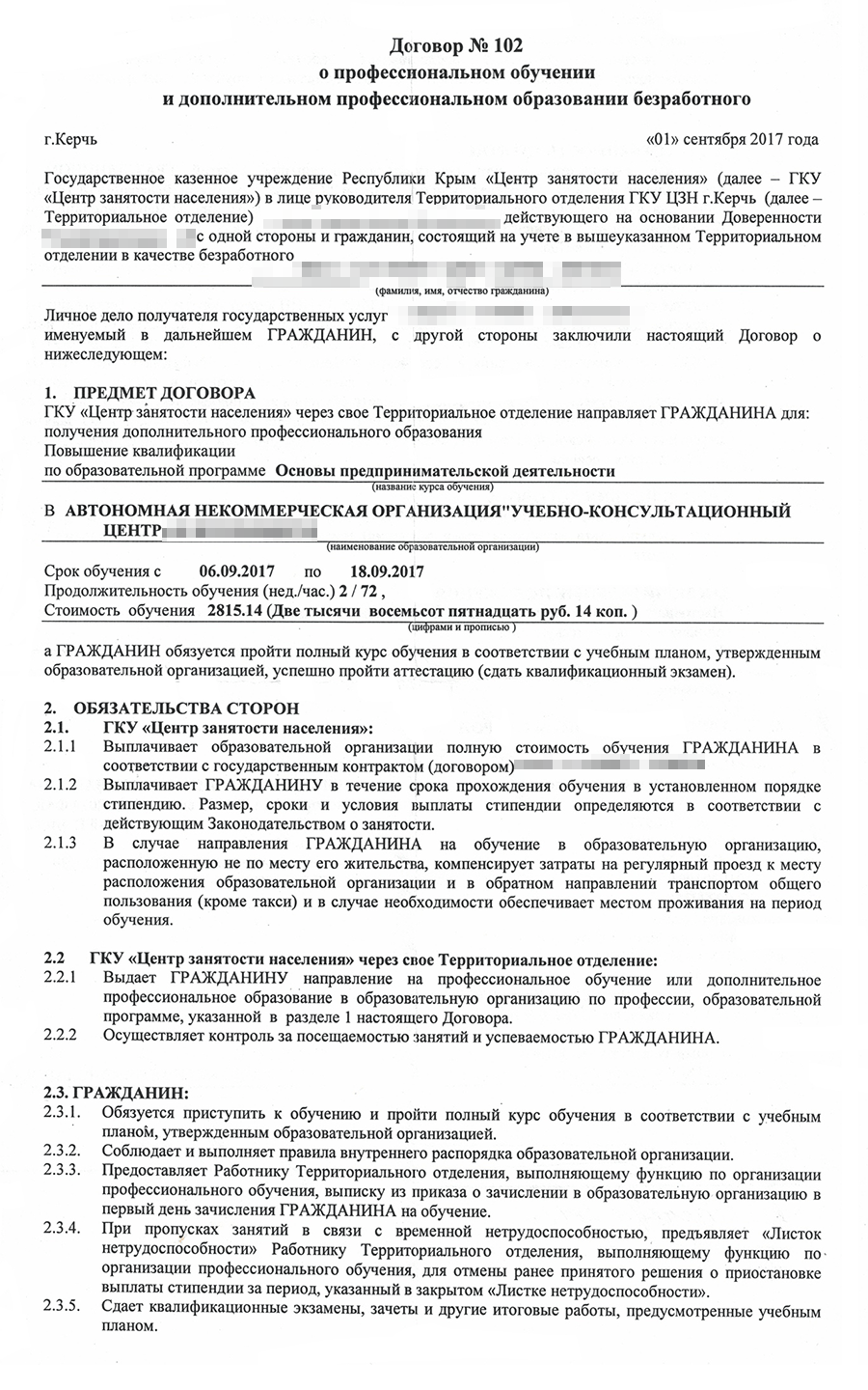 Курсы предпринимателей оказались платными — 2815 Р, но оплата обучения входит в программу государственной поддержки субъектов. Я заключила трехсторонний договор на предоставление образовательных услуг с центром занятости и образовательным центром и в начале сентября пошла учиться.