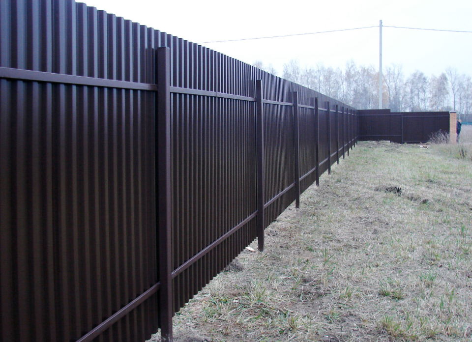 Далее панели вставляются в направляющие пазы столбиков. Вес одной панели 60 – 90 кг. Между панелями швы заделываются шпатлёвкой для наружных работ, забор обрабатывается грунтовкой глубокого проникновения и окрашивается фасадной акриловой краской.