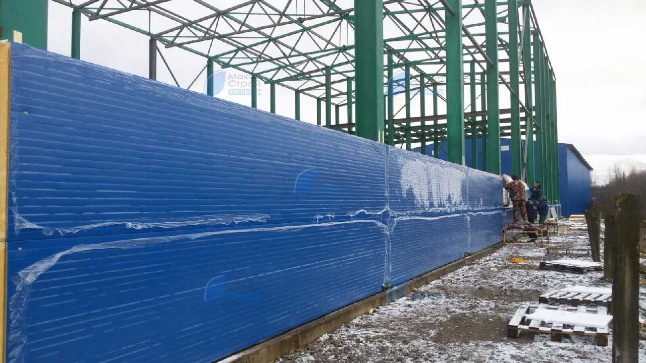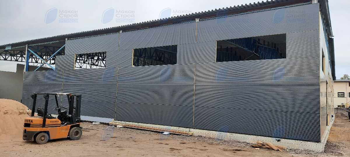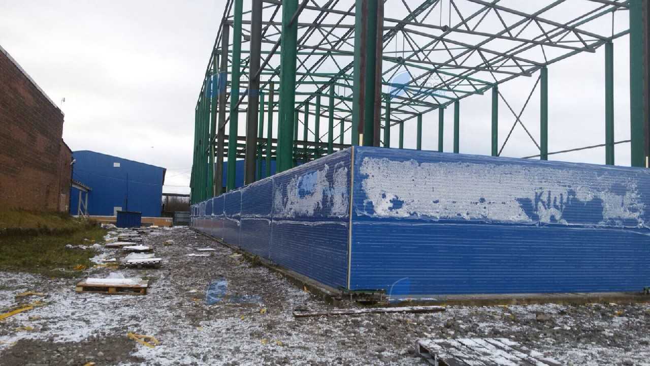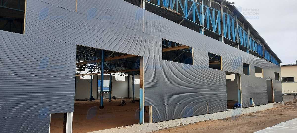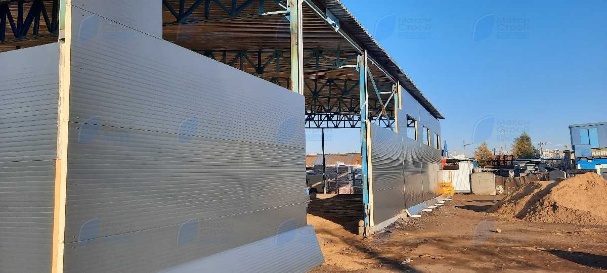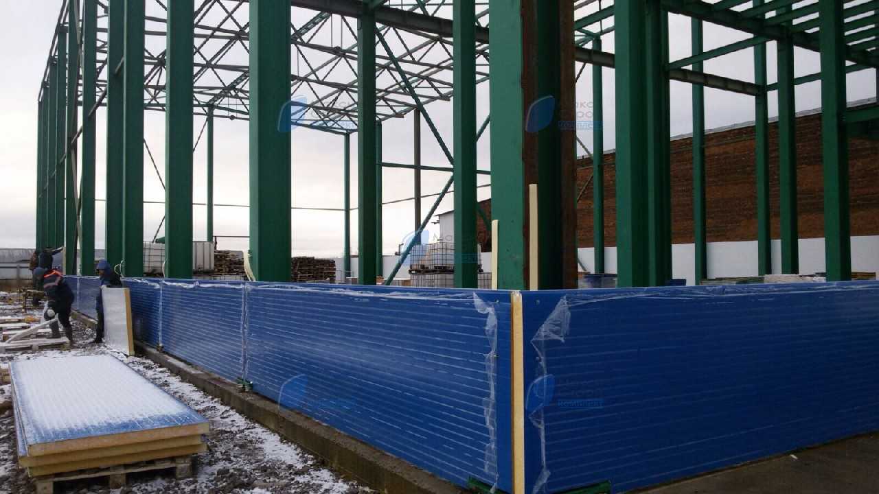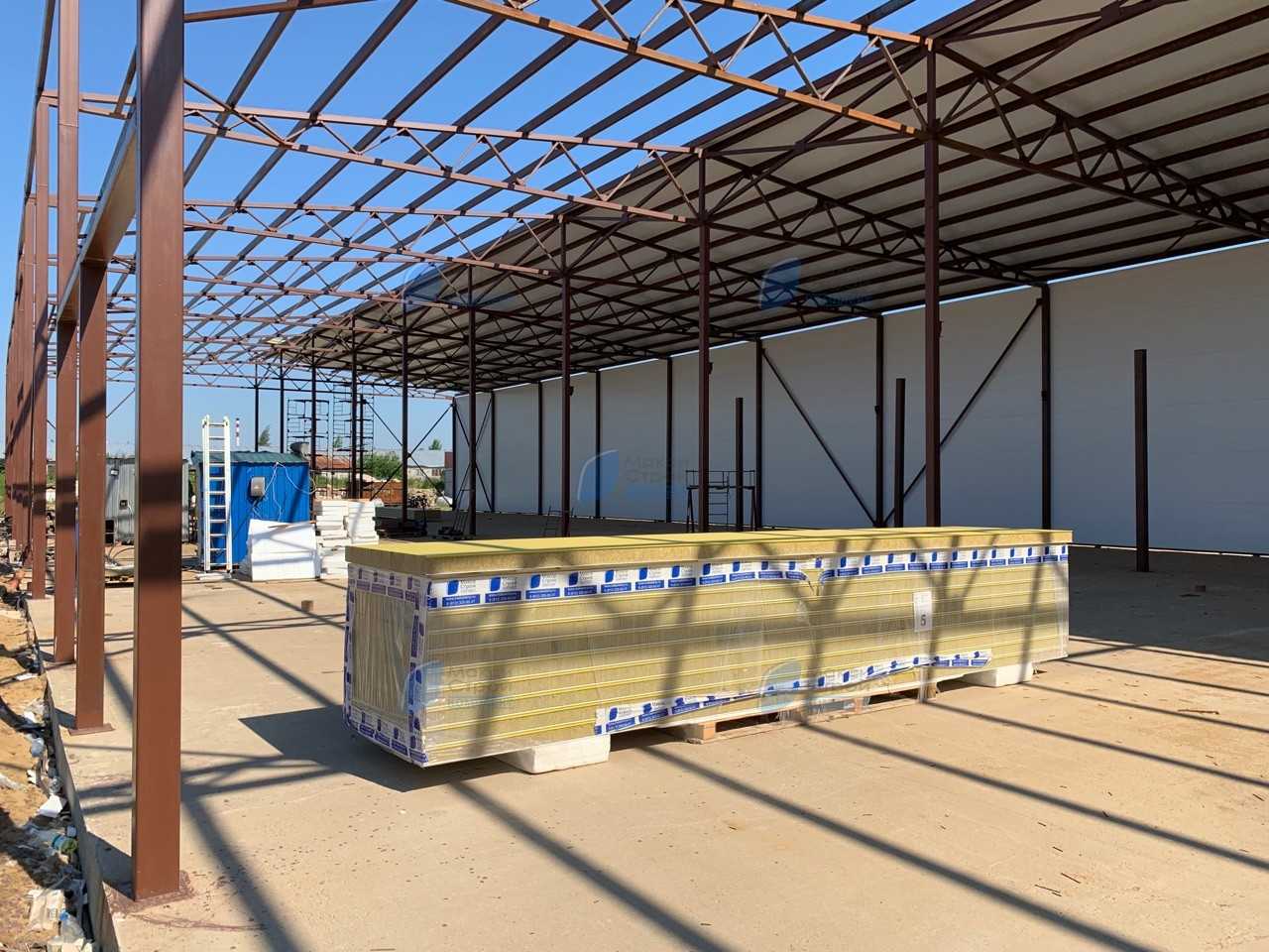 Выполненные работы: доработка металлического каркаса, разгрузка сэндвич-панелей, монтаж кровельных и стеновых сэндвич-панелей с наполением из минеральной ваты по существующему каркасу; монтаж фасонных элементов;