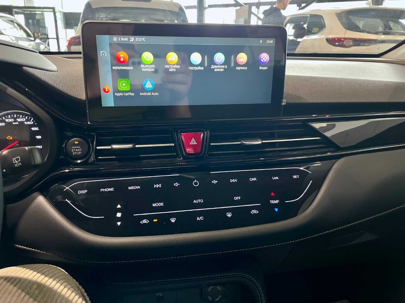 Что касается мультимедии, то она очень простая. Через нее можно настроить различные функции машины, которых немного, посмотреть давление в шинах и подключить телефон, например, для CarPlay.
