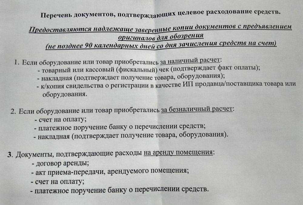 - Расходовать средства строго на то, что указано в бизнес-плане, непредвиденные траты — только за свой счет.