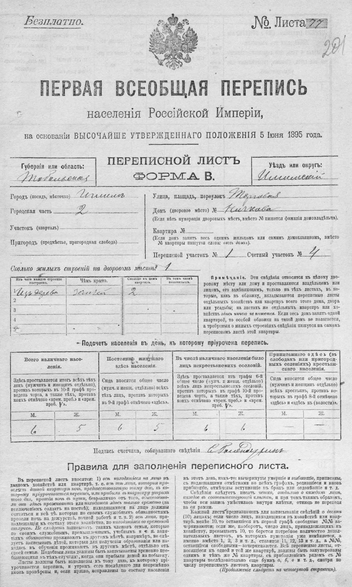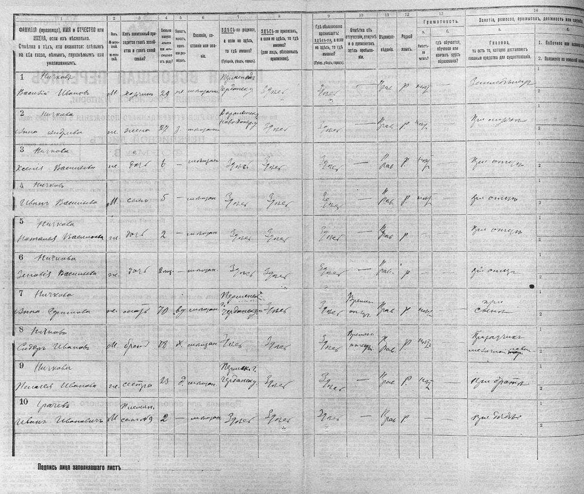 Мне повезло: по Тобольской губернии, где проживали в то время мои предки по линии Ничковых, сохранилось большинство переписных листов.