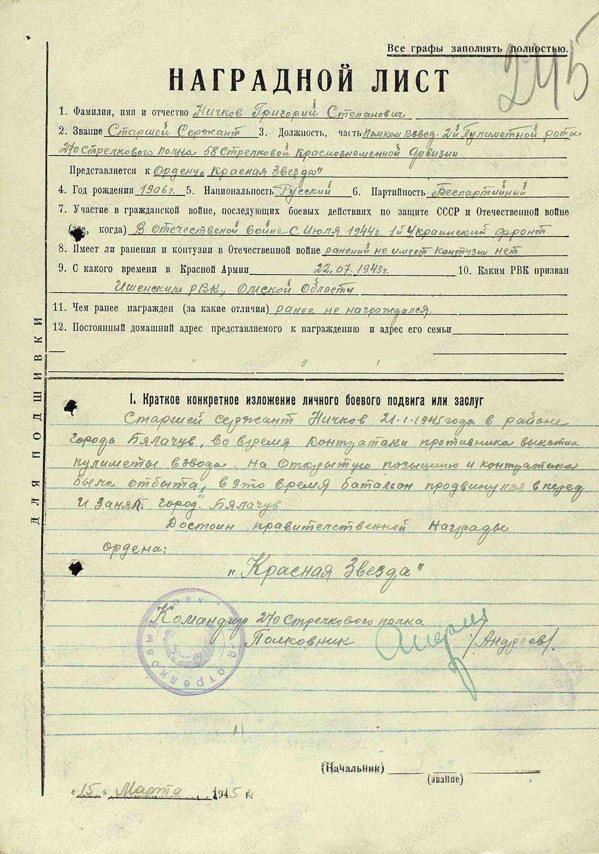 В наградном листе указывают, за какой подвиг солдат получил награду