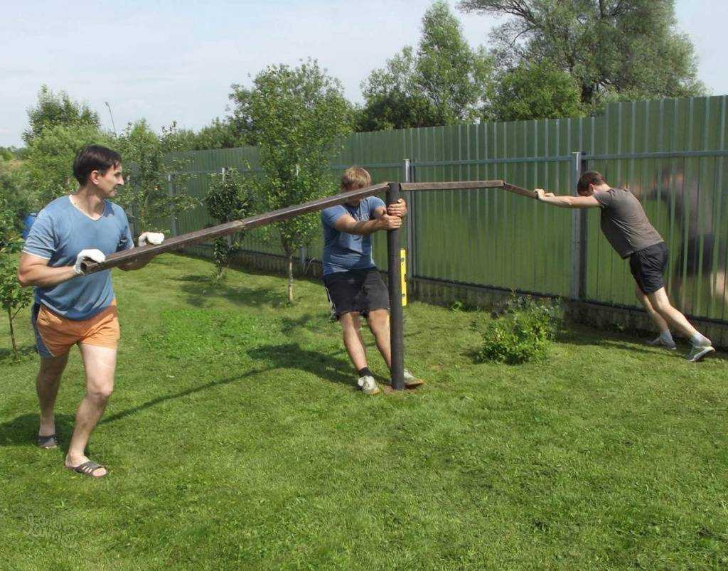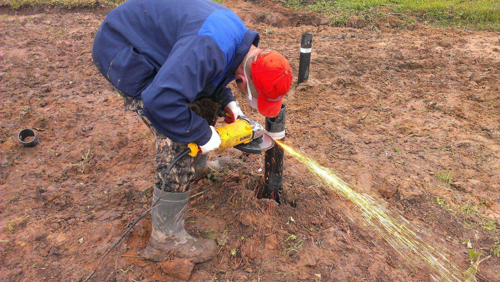 Далее по размеченным точкам сваи вкручиваются на необходимую глубину, которая зависит от глубины промерзания грунта в регионе. Монтаж можно выполнить вручную, как это показано на фото выше, либо же воспользоваться за отдельную плату услугами специальной техники. Цена на работы не такая уж и большая, так что при желании максимально ускориться, пользуемся такими услугами.