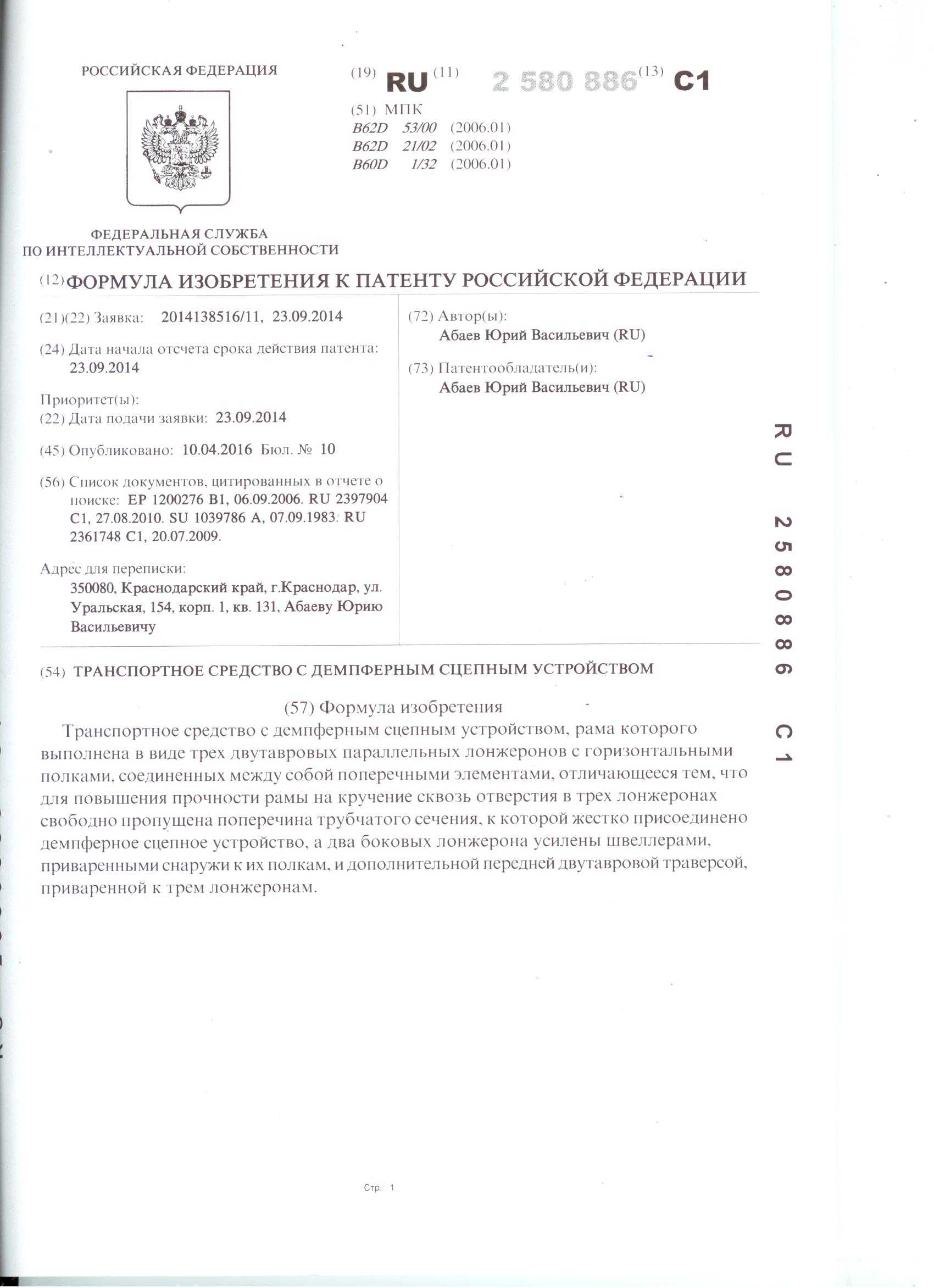 Ролл-трейлер изобретен нашим предприятием ООО НПЦ «РЕМКОМ» и испытан в ПАО «НМТП», Патент на изобретение №2580886 от 23 сентября 2014 года.