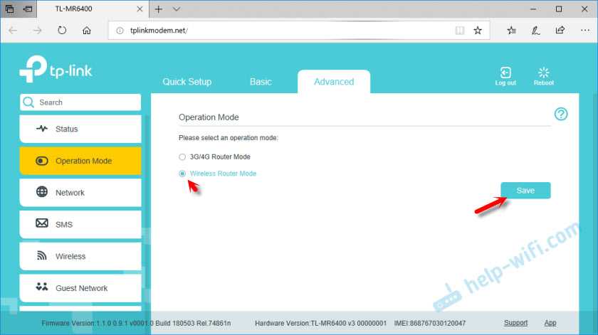 Если у вас интернет по кабелю, то в настройках, в разделе «Operation Mode» переводим роутер в режим «Wireless Router Mode». После сохранения настроек роутер будет перезагружен.
