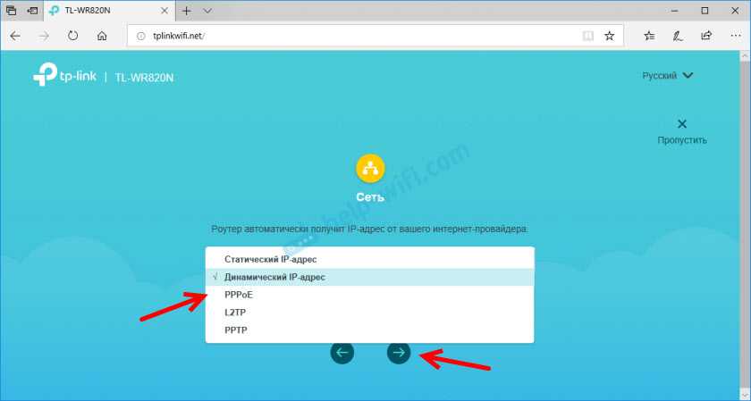 Выбираем тип подключения к интернету. Все зависит от вашего поставщика интернет услуг. Если не знаете какой выбрать – уточните у поддержки провайдера.