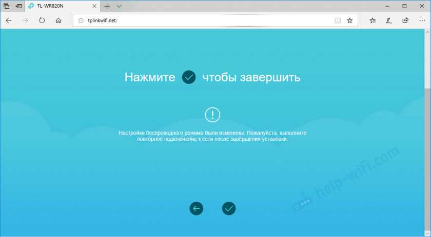 Нажимаем на галочку для завершения настройки и выполняем повторное подключение к Wi-Fi сети (уже с новым именем и паролем). Если вы изначально по Wi-Fi подключались, а не по кабелю.