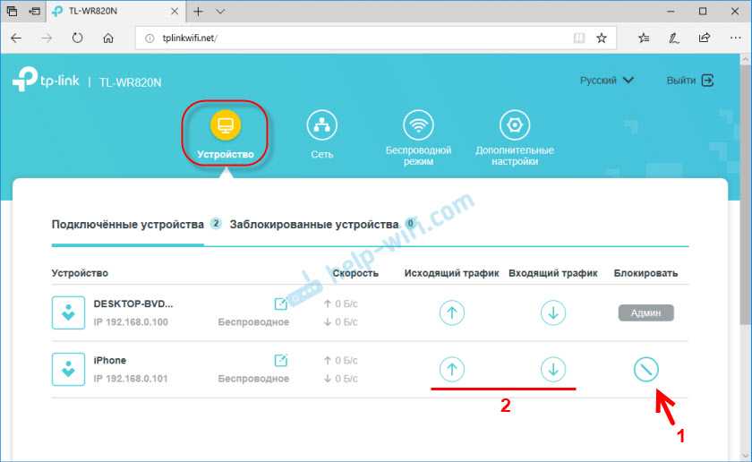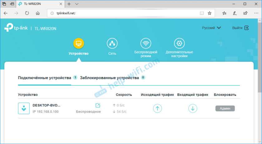 На вкладке «Устройство» будет отображаться список подключенных к TL-WR820N устройств.