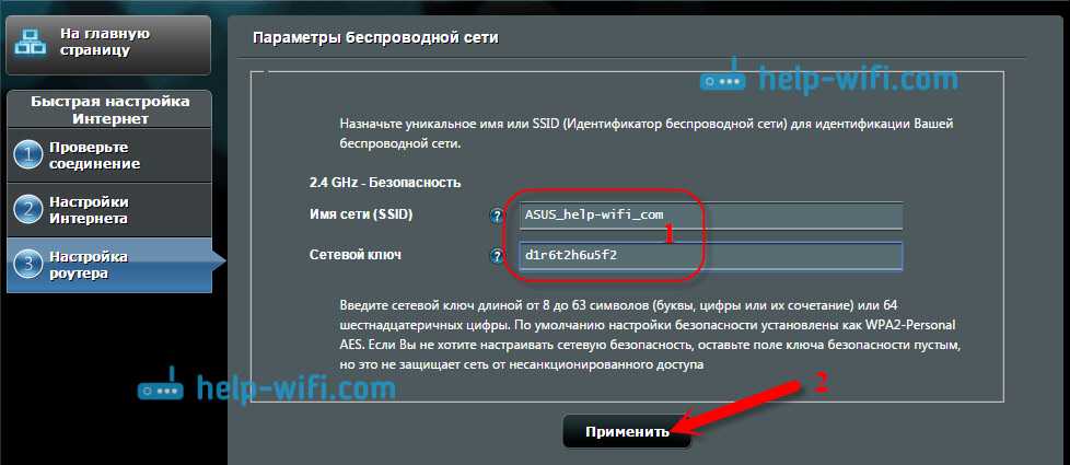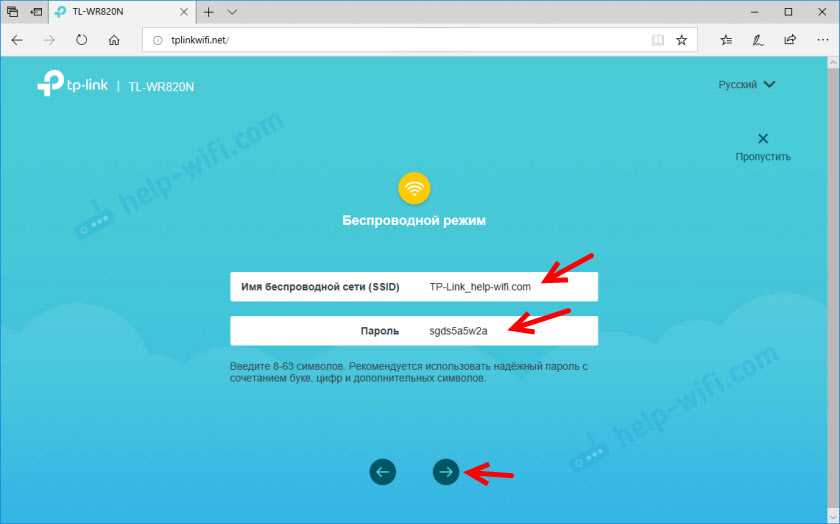 Следующий шаг – настройка Wi-Fi сети. Вы можете сменить имя сети и указать пароль, который будет использоваться для подключения к этой Wi-Fi сети. Используйте сложный пароль.