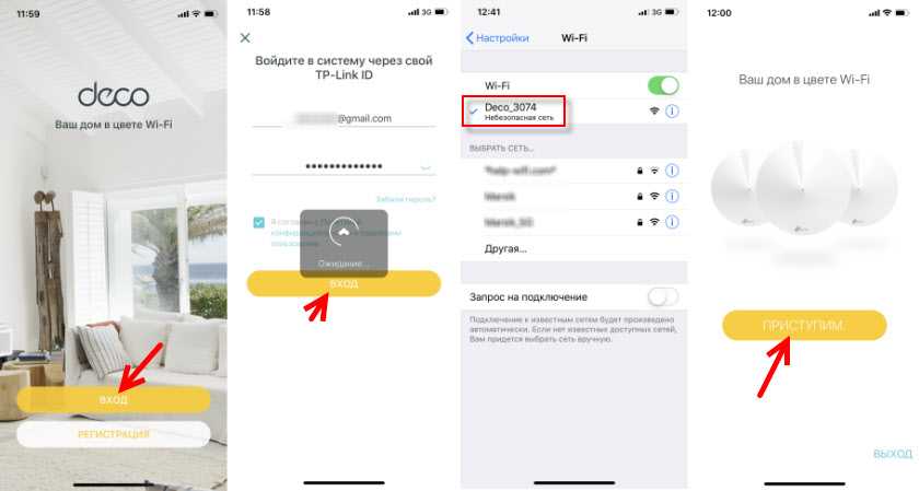 Запускам приложение Deco. Если у вас уже есть аккаунт TP-Link ID, то нажмите на кнопку «Вход» и войдите в него. Если нет, то нажмите на кнопку «Регистрация» и создайте аккаунт. После чего выполните вход в приложении.