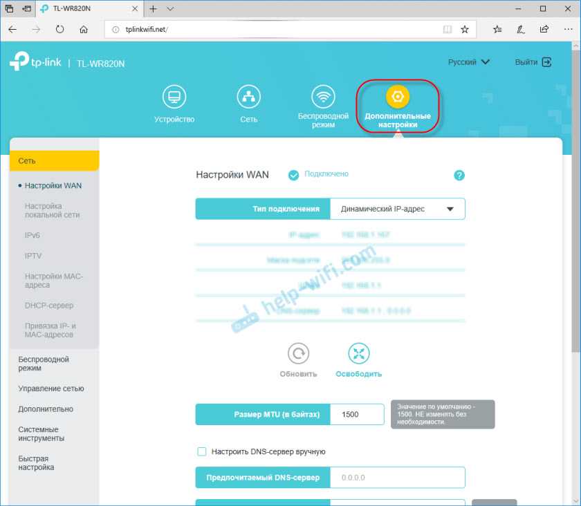 Ну и раздел «Дополнительные настройки» с множеством дополнительных настроек. Например, там можно найти расширенные настройки WAN.