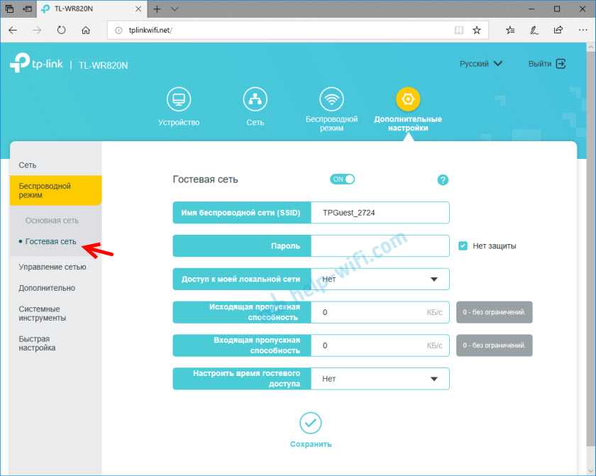 Можно настроить гостевую Wi-Fi сеть. Там же можно настроить ограничение скорости для гостевой сети. И даже создать расписание работы гостевой Wi-Fi сети на TL-WR820N.
