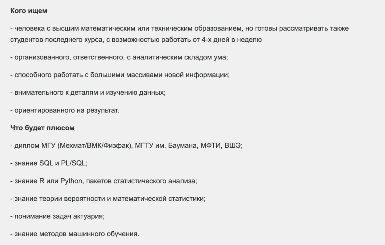«Плюшки» в вакансиях дата-аналитиков встречаются не так часто, как у разработчиков, — например, кальян, как бэкендерам, никто не предлагает. Зато могут помочь переехать в Москву — оплатят стоимость дороги и жилья за первый месяц. Есть даже схема, чтобы никто не заблудился по дороге на собеседование.
