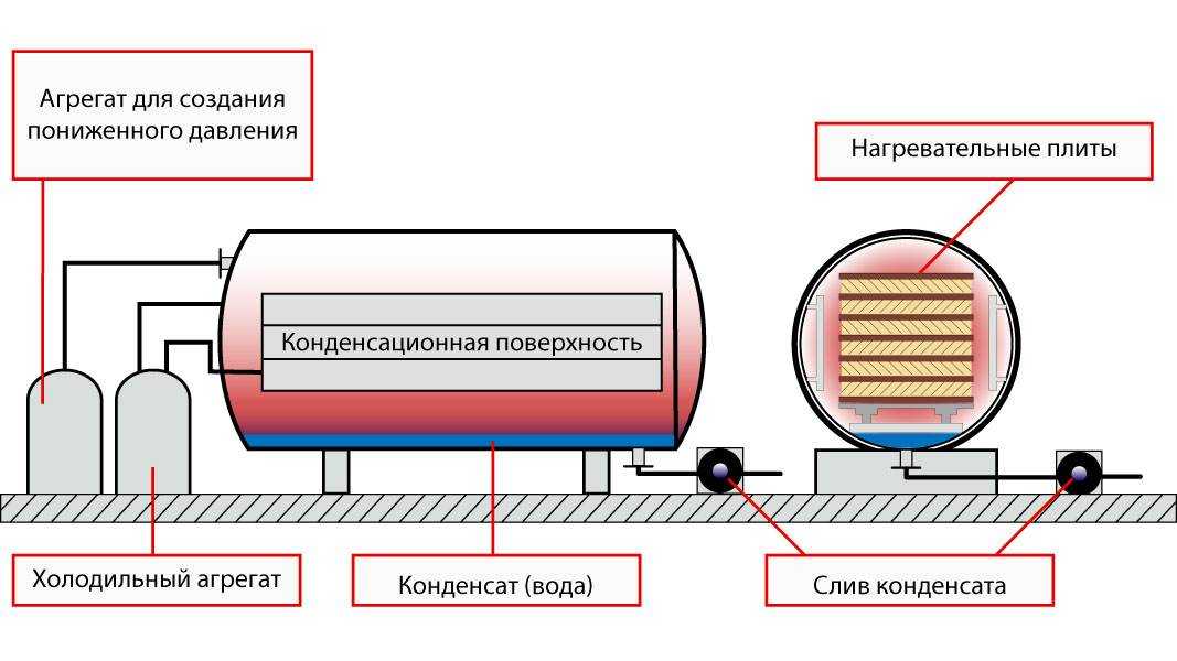 Сушильная камера для сушки древесины в вакууме состоит из следующих элементов:
