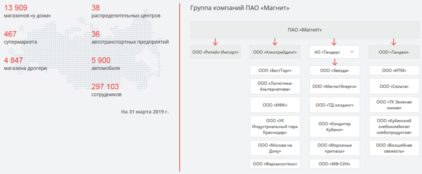 Кроме того, «Магнит» является одним из крупнейших частных работодателей в России. Общая численность сотрудников компании составляет около 300 тыс. человек.
