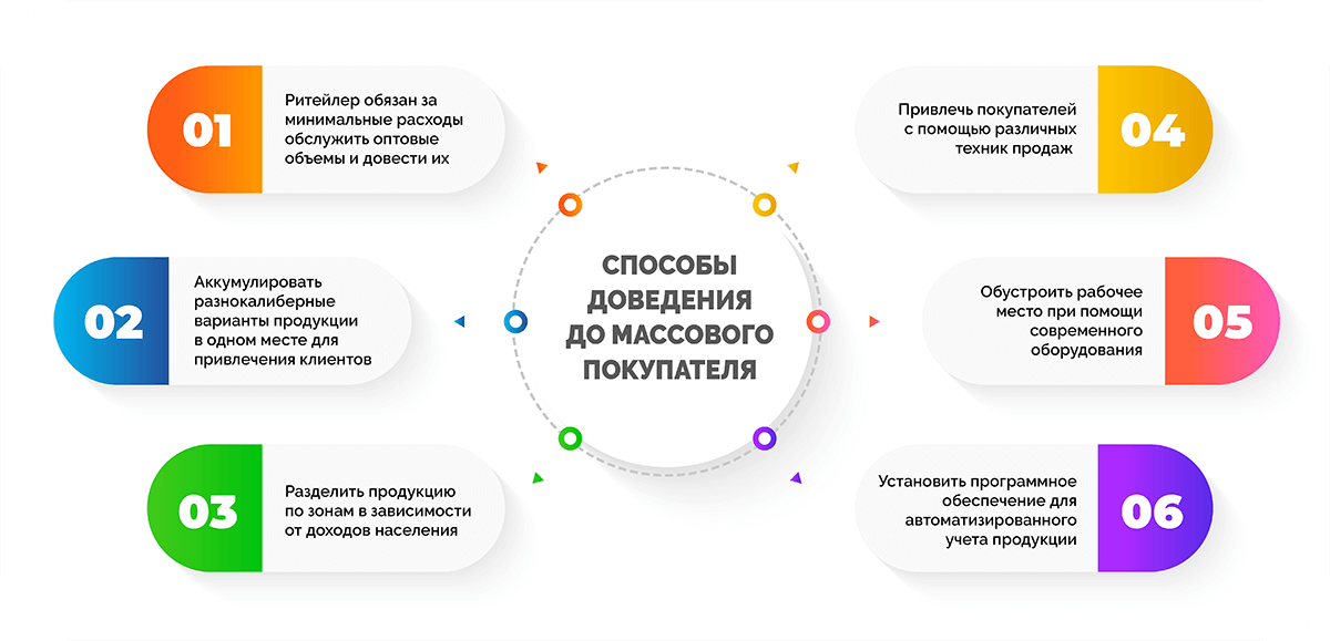 Чтобы торговое предприятие, специализирующееся на розничной торговле, смогло снизить издержки и поддерживать интерес покупателей, используются эффективные технологии ритейлинга и рекламы. Они позволяют выстраивать процесс реализации услуг с большей эффективностью.