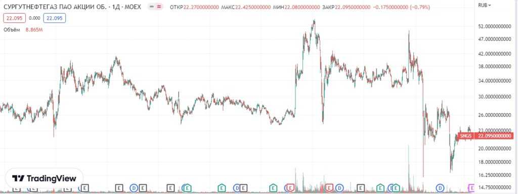 рассматривать будем только график акций Сургутнефтегаза.